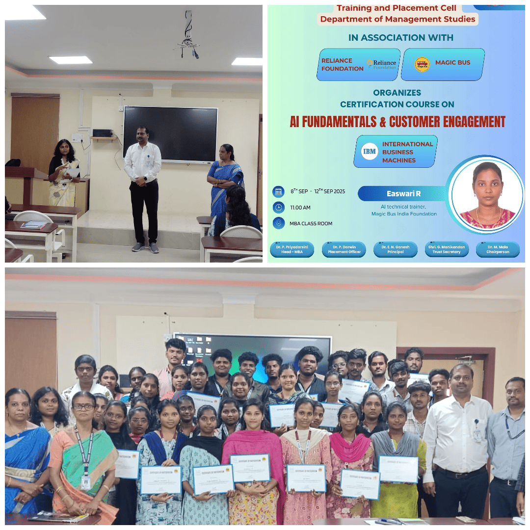 The Department of Management studies & Placement Cell Organised Certification Course on AI