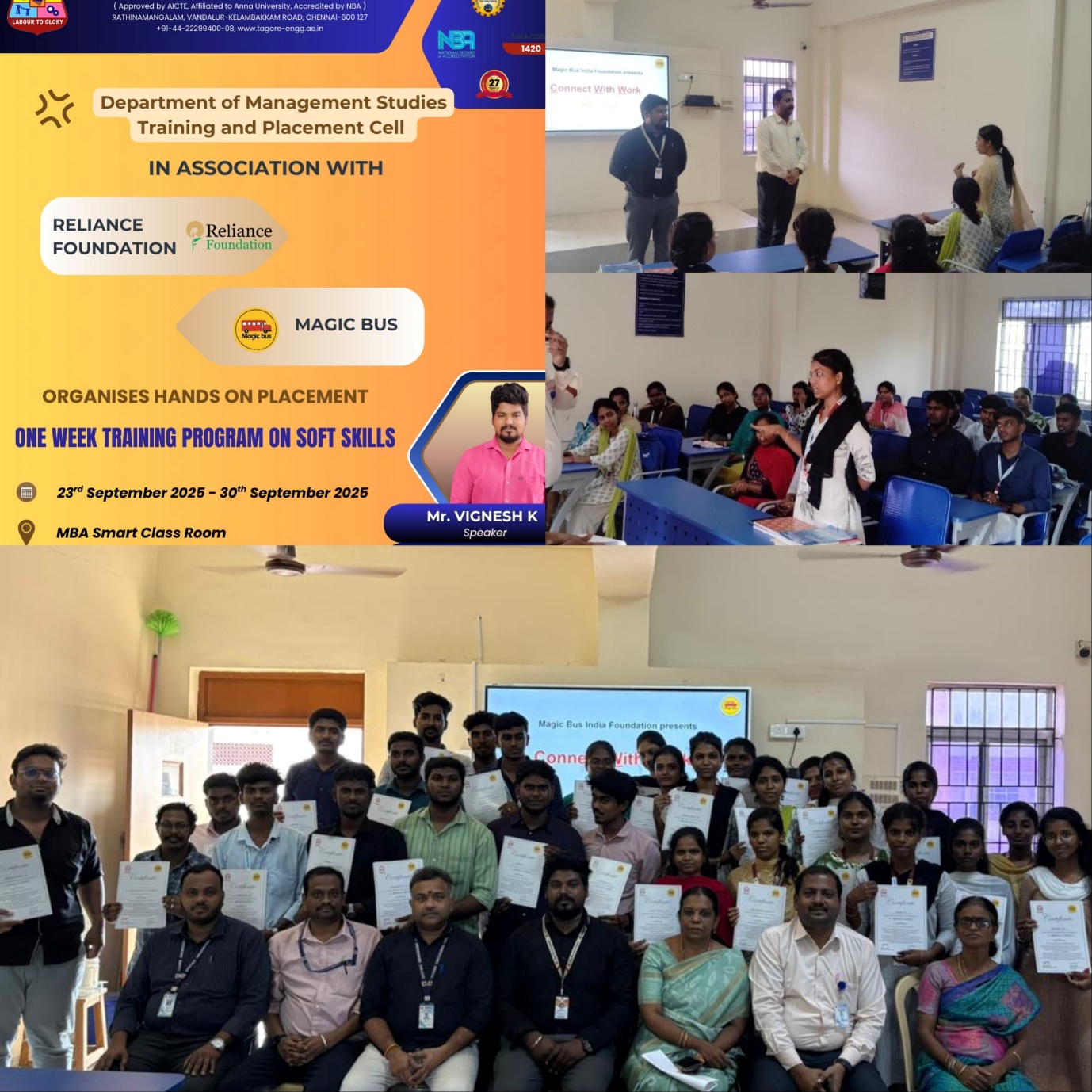 First Year students from 23rd to 27 th September 2025 and on 6 th October. Mr K Vignes, Soft Skill