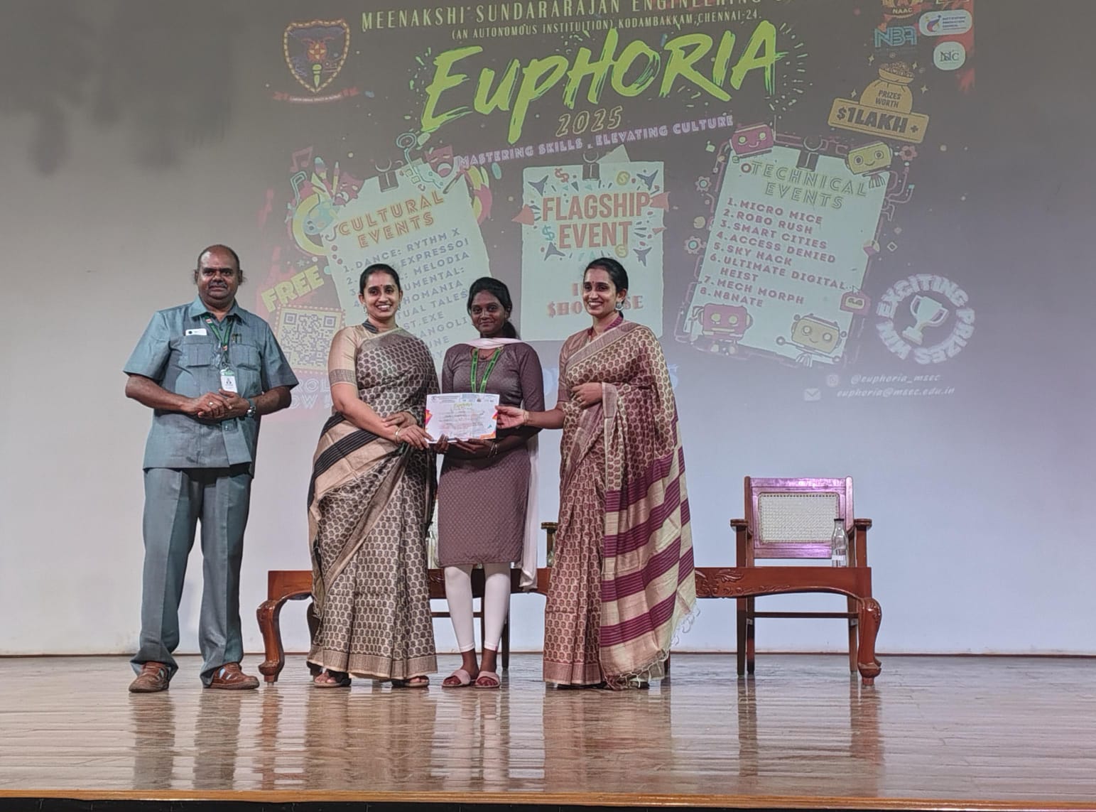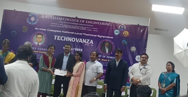 ECE Final year students S Deepa, R Rupesh, R Dinesh and M Magesh Boopathi under the guidance of faculty mentor Dr. P. Radhakrishnan participated Naan Mudhalvan, “Niral Thiruvizha 2.0 (Hackathon)” final review Titled “AI project on Smart Traffic Management System for Zero Violation” at Anna University, CEG campus on 21.05.2025