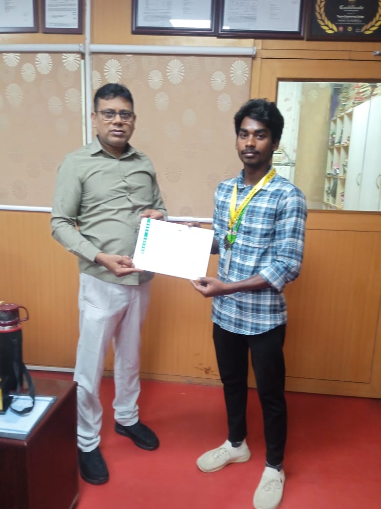Final year ECE students Mr.Arunachalam S, Mr.Mathiyazhagan S, and Mr. Rupesh R have secured 1st Prize in the prestigious "INDUSTRIAL IoT & INDUSTRY 4.0 HACKATHON - 2024", organized by "INGAGE TECHNOLOGIES" under the Naan Mudhalvan Scheme -TNSDC, Tamil Nadu. (Against 180 teams and 500+ participants).