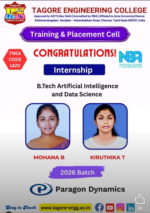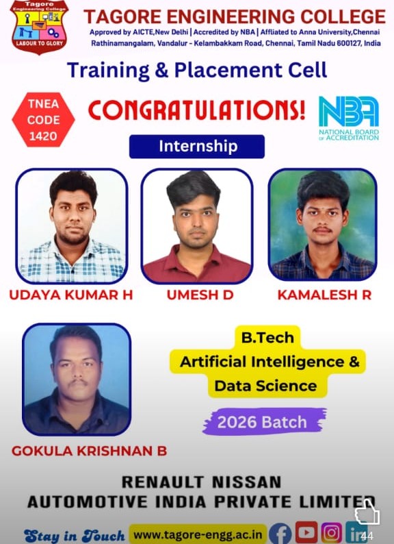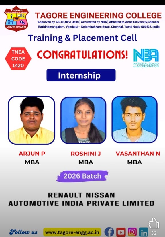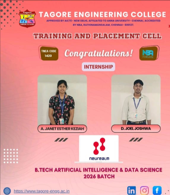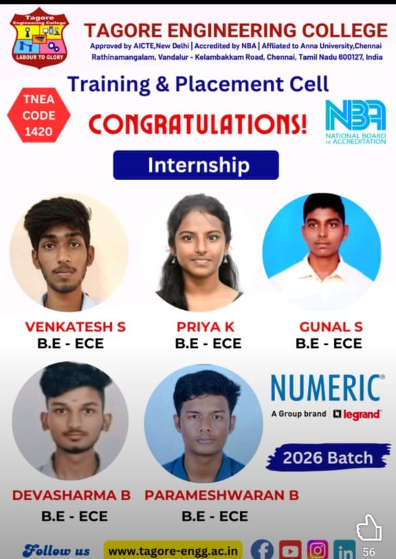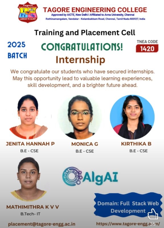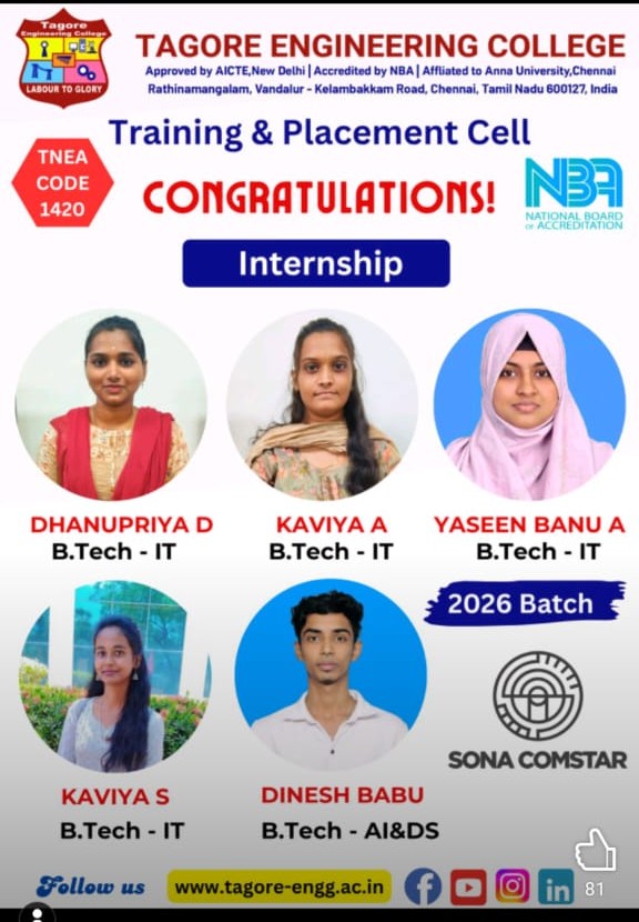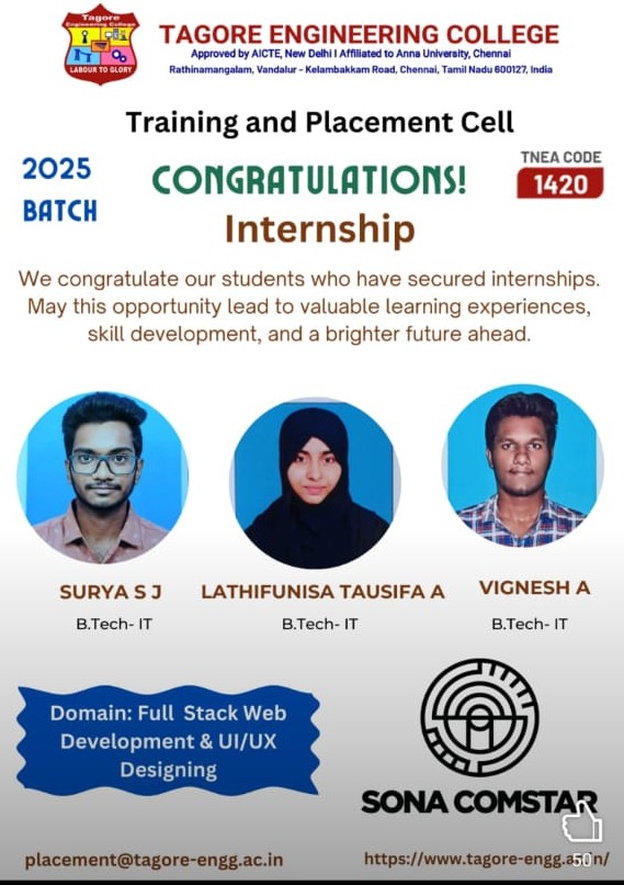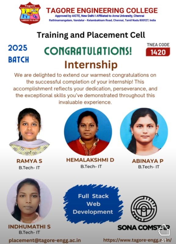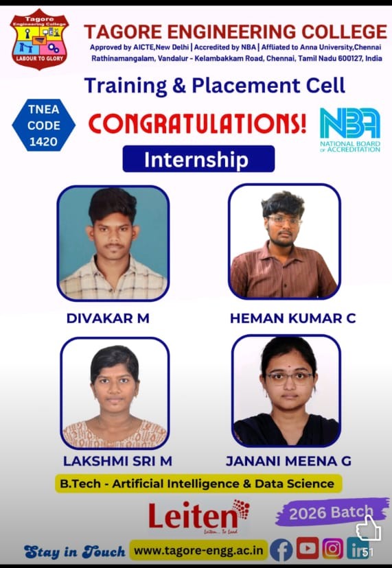 The Internship and Project program at Tagore Engineering College is a structured and