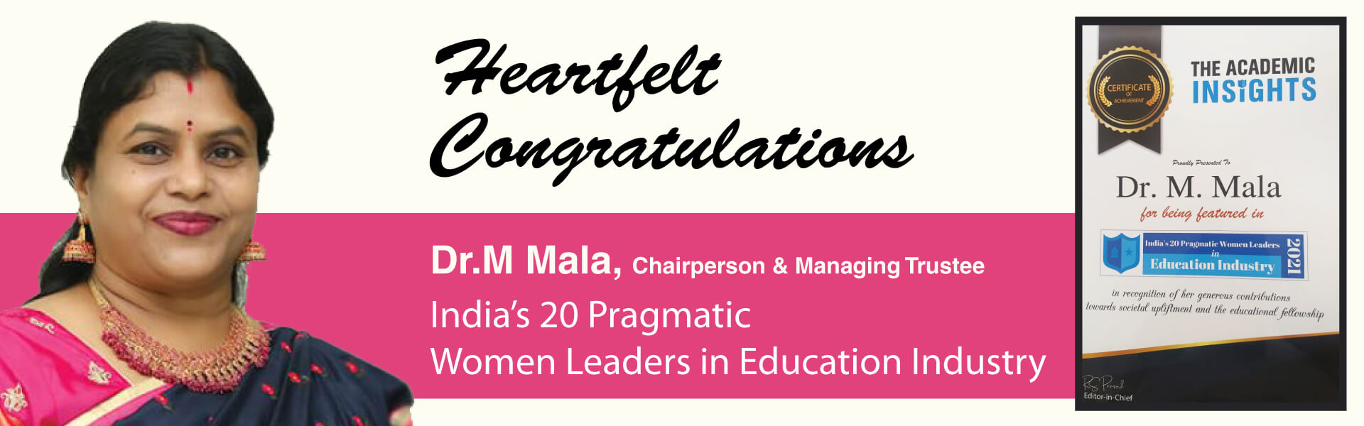 We envision the holistic development of our students into vibrant professionals, conscious of human values and eco-friendly environment and competent in skills. We leverage the above by providing all the departments with adequate infrastructural facilities and dedicated staff.