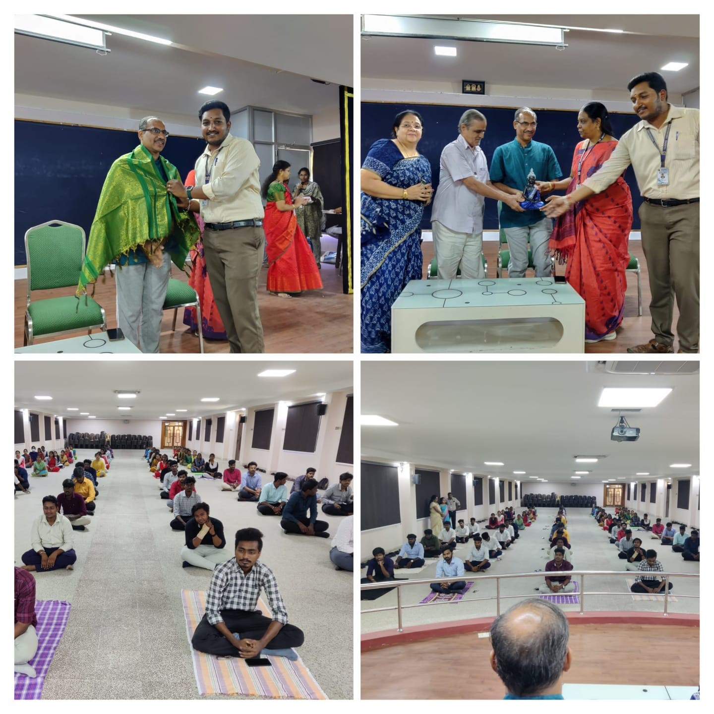 On 31st March, 2023, the department of Management studies organized Yoga for physical and mental well being of students. The yoga session was handled by Ms. Meena of Heartfulness Meditation Centre. The students of both 1st year and 2nd Year MBA participated in this and were made to do Asanas that connects mind and body of an individual balancing it in a healthy way.