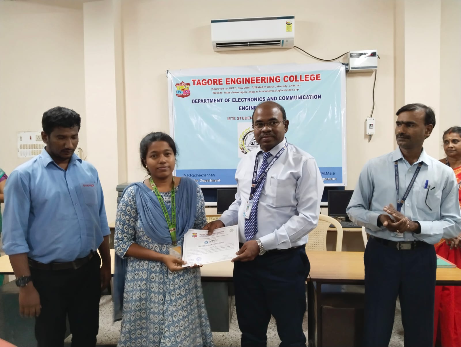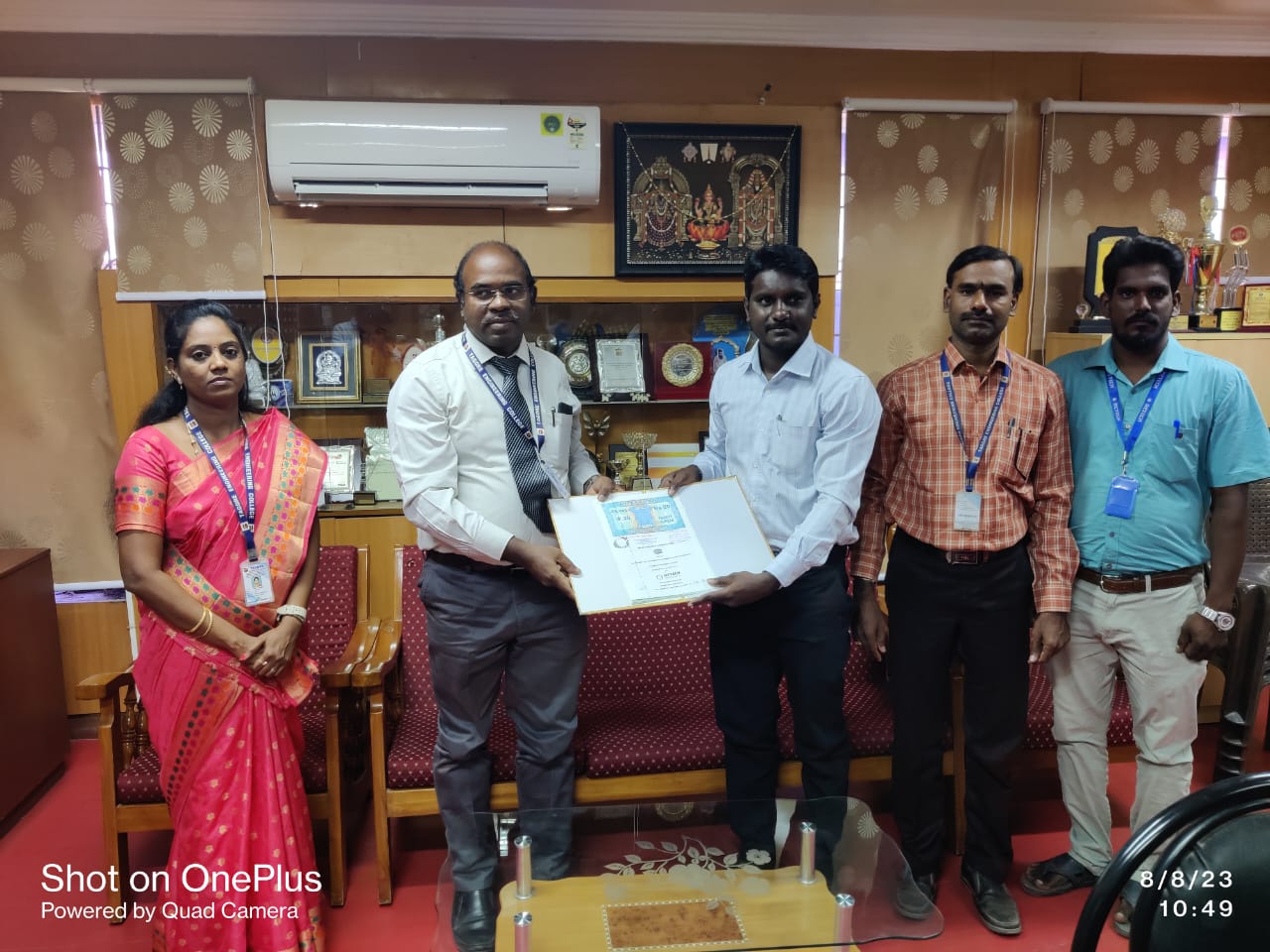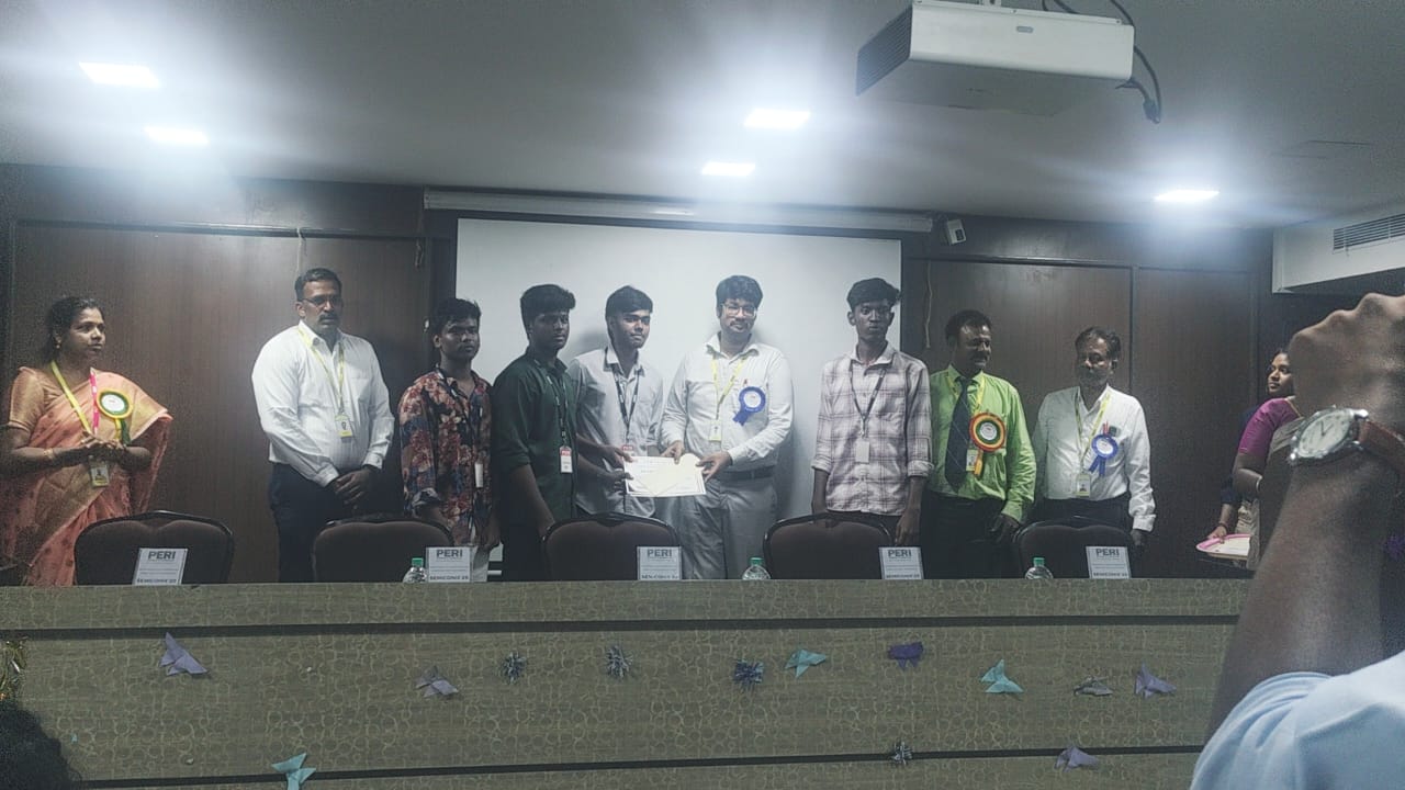 Final year ECE students Mr.Arunachalam S, Mr.Mathiyazhagan S, and Mr. Rupesh R have secured 1st Prize in the prestigious "INDUSTRIAL IoT & INDUSTRY 4.0 HACKATHON - 2024", organized by "INGAGE TECHNOLOGIES" under the Naan Mudhalvan Scheme -TNSDC, Tamil Nadu. (Against 180 teams and 500+ participants).