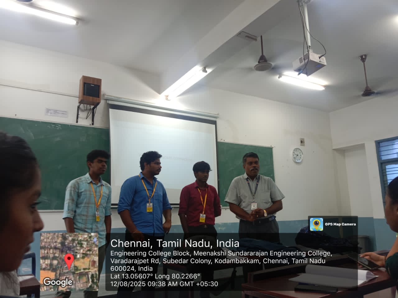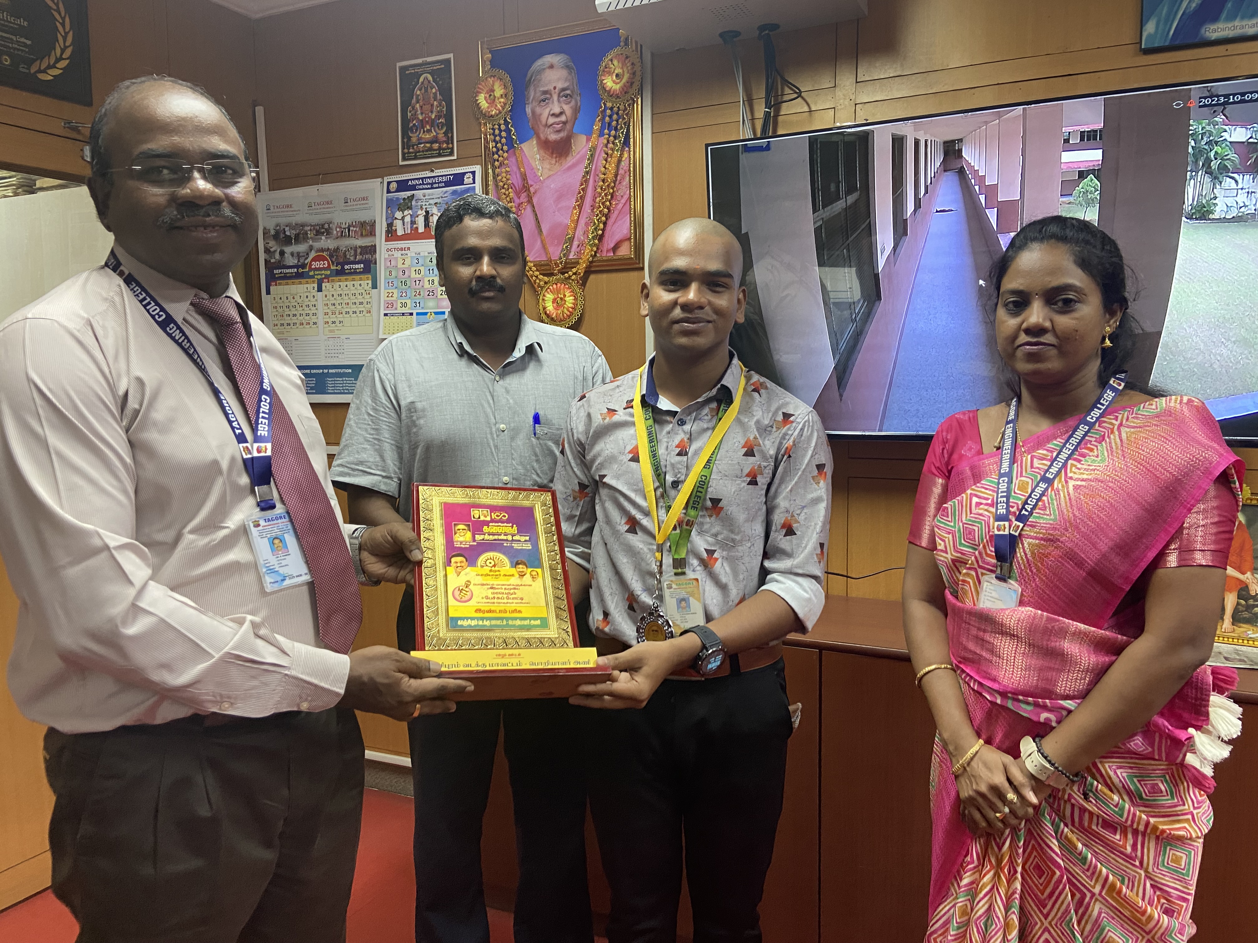 ECE Final year students S Deepa, R Rupesh, R Dinesh and M Magesh Boopathi under the guidance of faculty mentor Dr. P. Radhakrishnan participated Naan Mudhalvan, “Niral Thiruvizha 2.0 (Hackathon)” final review Titled “AI project on Smart Traffic Management System for Zero Violation” at Anna University, CEG campus on 21.05.2025