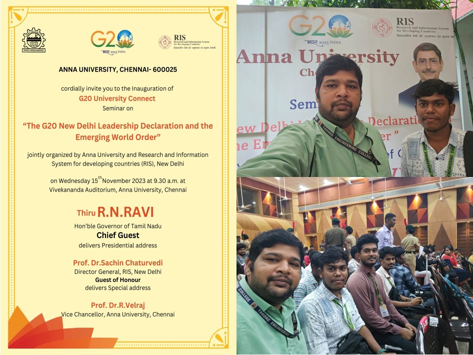 G20 University Connect - Seminar on The G20 New Delhi Leadership Declaration and the Emerging World Order on 15.11.2023