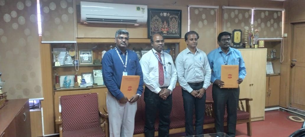 Dept of Mechanical Engineering had signed MOU with M&H Progressive Skills http://Pvt.Ltd . Dr.L.Raja, Principal, Mr.Senthilkumar Technical Head, and Dr.M.Durairaj took part to provide Training in Hydraulics and Pnematics and Advanced Industrial Automation.